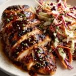 - Plate and serve: Arrange the glazed chicken thighs on plates alongside a generous portion of the autumn slaw. Serve immediately to enjoy the perfect balance of sticky, sweet chicken and refreshing, crunchy slaw.