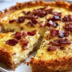 This Bacon and Cheese Quiche with a Hashbrown Crust is a delicious twist on a classic favorite. Combining crispy hashbrown edges with a savory filling of cheddar and bacon, it’s perfect for breakfast, brunch, or a satisfying meal any time of day.