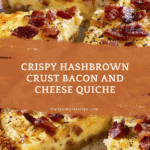 Keywords: bacon quiche, cheese quiche, hashbrown crust, breakfast casserole, brunch recipe, savory quiche, easy quiche, baked egg dish