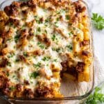 Baked rigatoni with meat sauce is a comforting Italian-American classic that’s perfect for family dinners. This dish combines hearty rigatoni pasta with a rich meat sauce and creamy béchamel, topped with melted mozzarella and Parmesan cheese. It’s easy to assemble and always a crowd-pleaser.