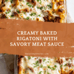 Keywords: Baked rigatoni, meat sauce, Italian pasta bake, béchamel sauce, mozzarella, Parmesan, comfort food, casserole