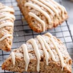 - Prepare Glaze and Serve: In a small bowl, whisk together the confectioner’s sugar, brown sugar, vanilla extract, and 2 teaspoons milk. Add an additional teaspoon of milk if a thinner glaze is desired. Drizzle the glaze over the cooled scones before serving.