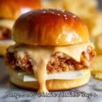 Keywords: Bang Bang Chicken Sliders, fried chicken sliders, spicy chicken sliders, appetizer, party food, slider recipe