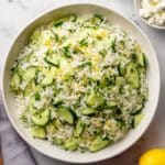 A refreshing and vibrant cucumber lemon orzo salad featuring al dente orzo pasta tossed with fresh Persian cucumbers, fragrant dill, parsley, and a zesty lemon olive oil dressing. This versatile salad can be served warm or chilled, making it perfect for a light lunch or a delightful side dish.