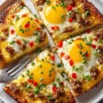 This Breakfast Pizza Hash Brown Crust is a delicious and hearty morning meal that combines a crispy hash brown base with savory breakfast toppings and baked eggs. Perfect for a satisfying brunch, it features a golden hash brown crust topped with cheddar cheese, sausage or bacon, bell peppers, green onions, and eggs baked to your preferred doneness.