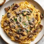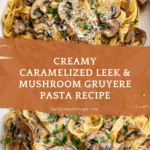 Keywords: Caramelized leek pasta, mushroom pasta, Gruyere pasta, creamy mushroom sauce, vegetarian pasta recipe
