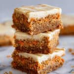 Freshly grated carrots provide the best texture and moisture for these bars. Pre-shredded carrots from bags are firmer and drier, which can affect the final cake texture. For best results, grate your own carrots using the coarse side of a box grater.