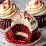 Delight in these decadent Cheesecake-Stuffed Red Velvet Cupcakes featuring moist red velvet cake wrapped around a creamy cheesecake center, topped with luscious cream cheese frosting. Perfect for celebrations or as a rich dessert treat.