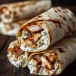 Cheesy Garlic Chicken Wraps combine tender shredded chicken with melted mozzarella and fragrant garlic, all wrapped in soft flour tortillas. This quick and easy recipe is perfect for a satisfying lunch or dinner, featuring a savory blend of Italian seasoning and melted cheese for a deliciously gooey filling.
