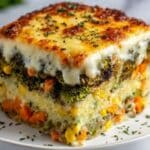 A comforting and flavorful Cheesy Vegetable Casserole featuring a medley of tender broccoli, cauliflower, carrots, and optional zucchini and bell peppers, all smothered in a creamy cheddar and mozzarella cheese sauce and topped with crispy buttery breadcrumbs and Parmesan cheese. Perfect as a hearty side dish or a main for vegetarian meals.