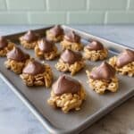 4. Form clusters. Using a spoon, scoop the coated cereal mixture into clusters onto the prepared baking sheet. This will form the base of your Scotcheroos.