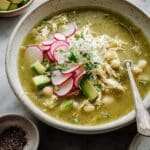Chicken Pozole Verde is a vibrant Mexican green soup full of flavor and comforting warmth. Made with tender chicken, hominy, and a tangy blend of tomatillos and peppers, this dish is perfect for gatherings or a satisfying weeknight meal.