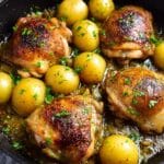 - Brown the Chicken: In a cast iron skillet or oven-proof Dutch oven, heat the olive oil and butter over medium-high heat. Season the chicken thighs generously with salt and pepper. Place the chicken skin-side down and sear for 4-5 minutes until the skin is golden and crispy, then flip and cook the other side for another 4-5 minutes. Remove the chicken from the skillet and set aside.