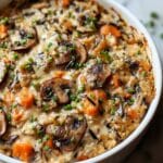 This comforting Chicken Wild Rice Casserole combines tender shredded chicken, nutty wild rice, sautéed vegetables, and a creamy cheese sauce, all baked to golden perfection with a crunchy breadcrumb topping. It’s a hearty and satisfying meal perfect for weeknight dinners or potlucks.