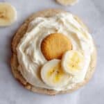 Keywords: banana cream pie cookies, chilled cookies, Crumbl cookies copycat, banana pudding cookies, dessert cookies