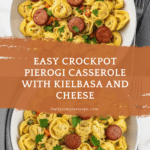 Keywords: pierogi casserole, crockpot pierogi, kielbasa casserole, slow cooker recipe, creamy pierogi dish, easy weeknight dinner