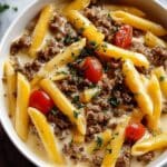 PrintCreamy Rotel Pasta with Ground Beef Recipe