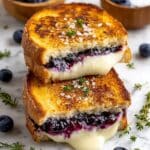 This Crispy Blueberry Grilled Cheese is a delightful twist on a classic comfort food. Featuring a homemade blueberry lemon thyme jam paired with melted white cheddar and mozzarella, it balances sweet, tangy, and savory flavors with a perfectly crunchy crust.