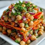 This Crunchy Thai Chickpea Salad is a vibrant, protein-packed dish featuring tender chickpeas, fresh vegetables, and a zesty Thai-inspired tahini dressing. Perfect as a light meal or side, it combines a delightful crunch with bold, tangy flavors and a hint of spice.