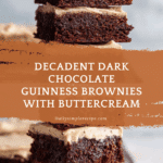 Decadent and rich Dark Chocolate Guinness Brownies topped with a smooth espresso-infused buttercream made with a reduction of Guinness beer for a unique depth of flavor. These brownies combine the fudgy texture of dark chocolate with the malty bitterness of Guinness, perfectly balanced by a creamy, fluffy buttercream frosting.