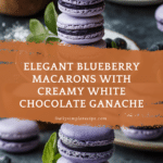 Keywords: macarons, blueberry macarons, French dessert, white chocolate ganache, elegant macarons, colorful macarons, homemade macarons
