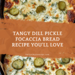 This Dill Pickle Focaccia Bread is a savory, flavorful twist on traditional focaccia with tangy dill pickles, a garlic-infused sauce, and melted mozzarella cheese. Perfect as a snack or appetizer, this bread is soft, fluffy, and loaded with delicious dill and garlic notes, baked to golden perfection in a cast-iron skillet.