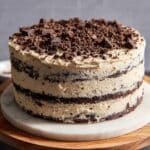 This Double Chocolate Chip Cake with Espresso Cream Cheese Frosting is a decadent, moist chocolate cake layered with rich espresso morsels and topped with a smooth, tangy cream cheese frosting infused with espresso. The optional crushed chocolate-covered espresso beans add a delightful crunchy texture, making this cake perfect for coffee and chocolate lovers alike.