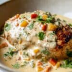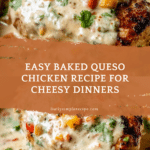 This Easy Baked Queso Chicken recipe features tender, marinated chicken breasts seared to perfection then baked with a rich, cheesy queso sauce and sautéed vegetables. With bold Mexican-inspired spices and a creamy topping, this dish is a crowd-pleaser that’s both simple to prepare and packed with flavor—perfect for a comforting weeknight dinner.