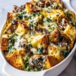 This easy and versatile breakfast strata is a savory casserole that combines hearty bread cubes soaked in a flavorful egg and cheese custard with your choice of vegetables and meats. Perfect for make-ahead breakfasts or brunches, it offers a delicious blend of Gruyere, Parmesan, and savory seasonings with customizable fillings like spinach, mushrooms, sausage, and bacon. The strata is baked until golden and puffed, creating a comforting dish that’s simple to prepare and pleasing to a crowd.