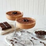 This Espresso Martini Coffee Cheesecake is a luscious no-bake dessert that combines the rich flavors of coffee, cacao, and creamy Greek yogurt with a crunchy chocolate cookie crust. Served elegantly in martini glasses, it offers a delightful blend of smooth cheesecake filling infused with espresso and Kahlua, garnished with chocolate shavings and espresso beans for a sophisticated finish. Perfect for coffee lovers looking for a quick and indulgent treat.