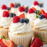 These fluffy angel food cupcakes are light, airy, and perfect for a delicate dessert. Topped with whipped cream and fresh fruit, they offer a delightful treat that’s easy to make at home.