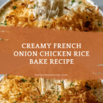 Keywords: French Onion Chicken Rice Bake, chicken casserole, baked rice dish, comfort food, easy dinner recipe, leftover chicken recipe
