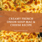Keywords: French onion soup mac and cheese, caramelized onion mac and cheese, baked mac and cheese, comfort food, cheesy pasta, French inspired recipes