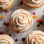 Keywords: Fruity Pebbles frosting, cereal milk frosting, fruity frosting, cake frosting, cupcake frosting, cereal infused frosting