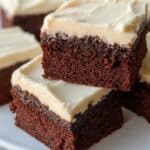 - Chilling the frosted brownies helps the topping set and allows cleaner slices.