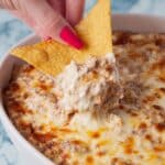 Store leftovers in an airtight container in the refrigerator for up to 3 days. Reheat gently in the microwave or oven until warmed through. Add a splash of water if the dip thickens too much after refrigeration.