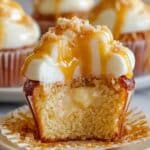 These Honey Peach Cream Cheese Cupcakes combine moist vanilla cupcakes with a sweet peach preserve center, topped with a smooth cream cheese frosting, fresh peach pieces, and a drizzle of honey for an irresistible treat.