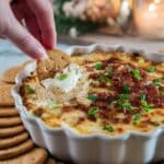 A rich and creamy Hot Smoked Gouda Bacon Dip featuring smooth cream cheese, smoky gouda, crispy bacon, and fresh scallions, baked until bubbly and golden for a perfect party appetizer or game day treat.