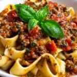 Keywords: Italian pasta, drunken noodles, turkey sausage pasta, pappardelle recipe, stovetop pasta, bell pepper pasta, Italian sausage recipe
