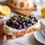 A delightful and refreshing Lemon Blueberry Ricotta Toast featuring homemade blueberry compote, creamy ricotta, and zesty lemon on perfectly toasted sourdough bread. This easy-to-make recipe combines sweet, tangy, and creamy flavors for a perfect breakfast or snack.