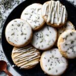 Keywords: lemon cookies, lavender cookies, shortbread, lemon glaze, floral cookies, tea cookies, buttery cookies