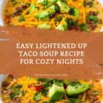 This Lightened Up Taco Soup is a flavorful and comforting dish that’s perfect for any day of the week. It combines hearty ground beef with a blend of spices and a creamy finish, creating a rich yet lighter twist on classic taco soup.