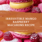 Keywords: mango macarons, raspberry macarons, French macarons, mango buttercream, raspberry filling, almond meringue dessert, elegant desserts, homemade macarons