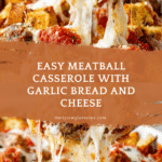 Keywords: Meatball casserole, garlic bread casserole, baked meatballs, mozzarella cheese casserole, easy dinner recipe
