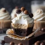 - Add toppings and serve: Before serving, top each mini cheesecake with coffee whipped cream and garnish with chocolate-covered espresso beans for a delightful finish.