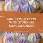 Mini Lemon Tarts with Lilac Meringue are a delightful blend of tangy citrus and sweet, fluffy topping. These individual-sized treats combine a crisp tart shell, smooth lemon curd, and a beautifully tinted meringue crowned with edible flowers.
