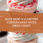 - Step 8: Before serving, top each mini cheesecake with whipped cream and Valentine sprinkles if desired for a festive touch.