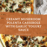 This hearty Mushroom Polenta Casserole combines creamy polenta with sautéed mushrooms and sage, topped with a melty cheese layer and served alongside a flavorful garlic yogurt sauce. Perfectly baked until golden, this comforting dish offers a delightful blend of textures and Mediterranean flavors.