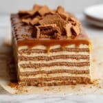 This No-Bake Cookie Butter Icebox Cake is a decadent and creamy dessert that combines the rich flavor of Lotus Biscoff spread with light whipped cream and mascarpone. Easy to assemble and perfect for any occasion, it requires no baking and only a little patience for chilling.