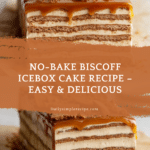 This No-Bake Cookie Butter Icebox Cake is a luscious and creamy dessert featuring layers of Lotus Biscoff cookies and a rich whipped cream and cookie butter mixture. With a hint of mascarpone and vanilla, this easy-to-make icebox cake requires no baking and is perfect for impressing guests or treating yourself to a decadent homemade sweet.